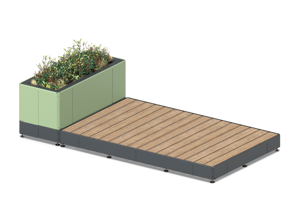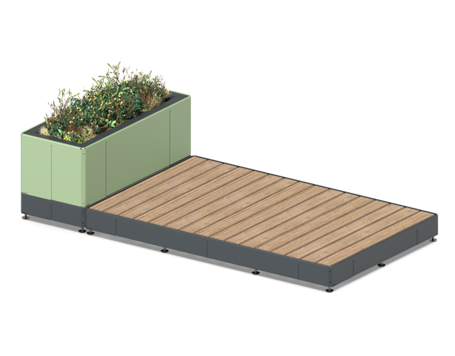 All parklet modules within the Parkly modular system can be combined to create green spaces, fostering healthy and livable street scapes.