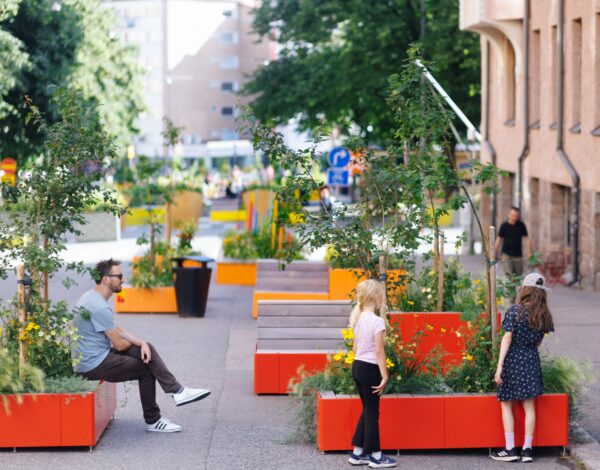 The modular green seating concept and design are created by Ziran Cultural Cooperative, with green planning led by Espoo City gardeners.